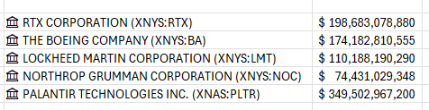 But let’s just think about this for a second. How does it compare to the big defense contractors?