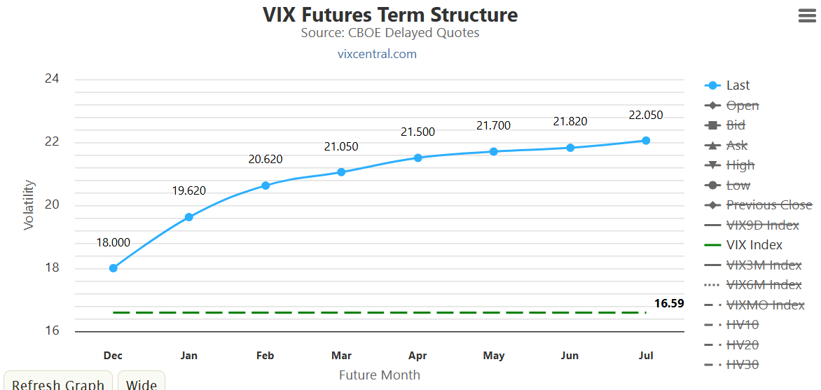 You’ve got a spot VIX at 16.5 going into holiday trading. And while the market vol has been in the 16s… the past 5 days are back into the single digits.