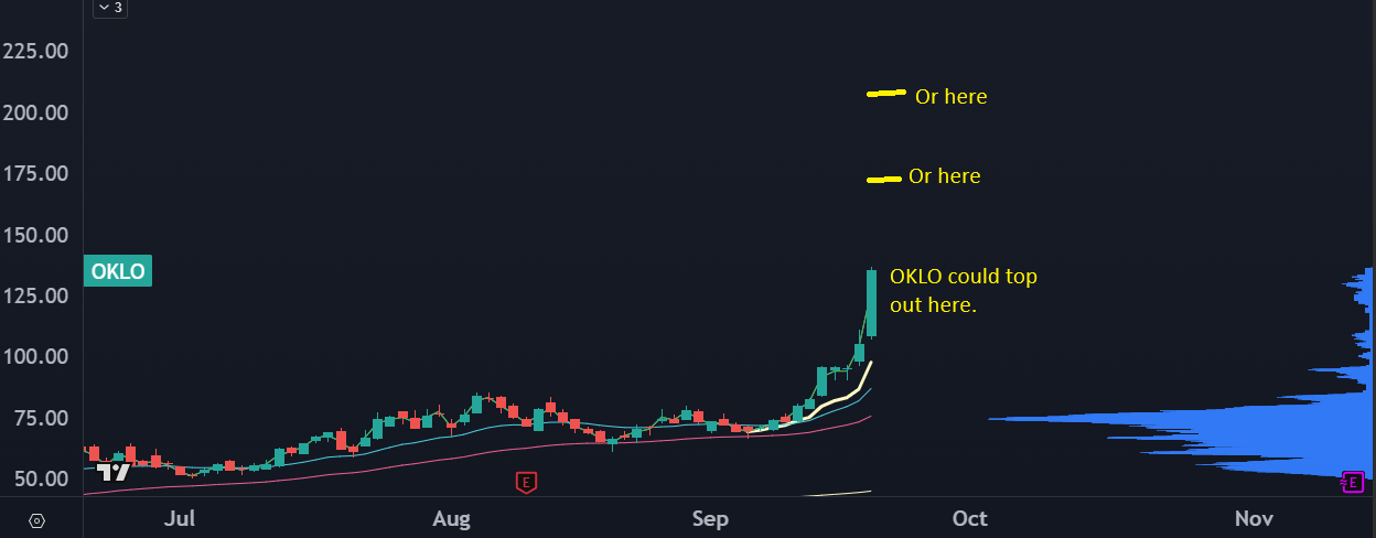 This is why they call it “the hard right edge.” It’s easy to see charts in hindsight and how obvious the top was… but let’s look at an example in OKLO: