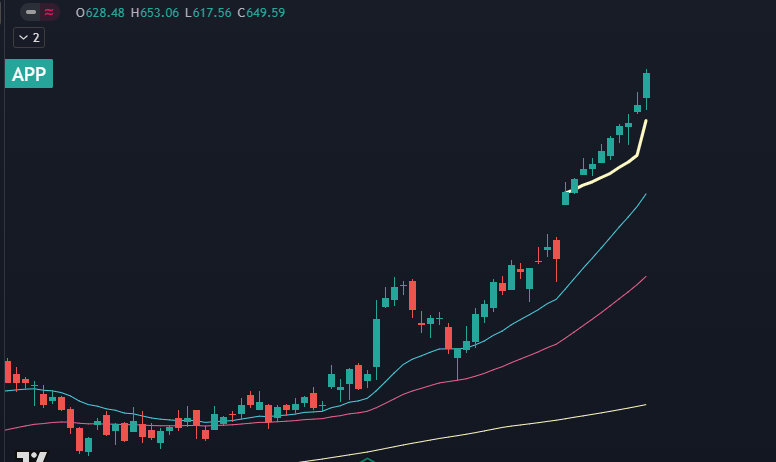 Shorting the frontside parabolic on APP may reward you with some profits, but it’s going to be a tough trade!