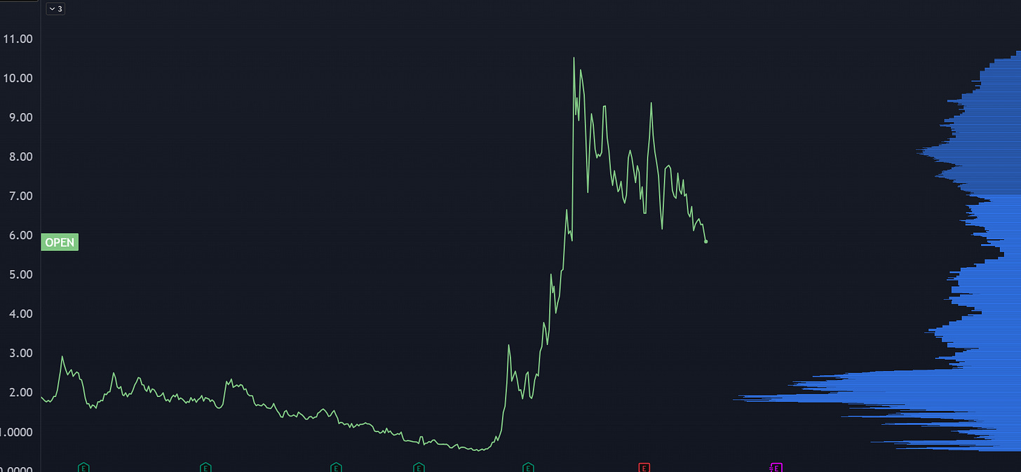 This stock had a ton of eyeballs on the $10 move, and everyone got beared up with buying puts and looking for the “obvious” parabolic unwind. And then it didn’t hit… it just chopped around for well over a month.