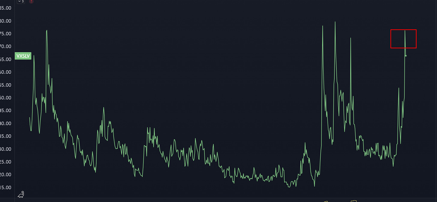 The silver VIX spiked up to 75, which has been close to a peak and higher than what we saw during the 2011 parabolic.