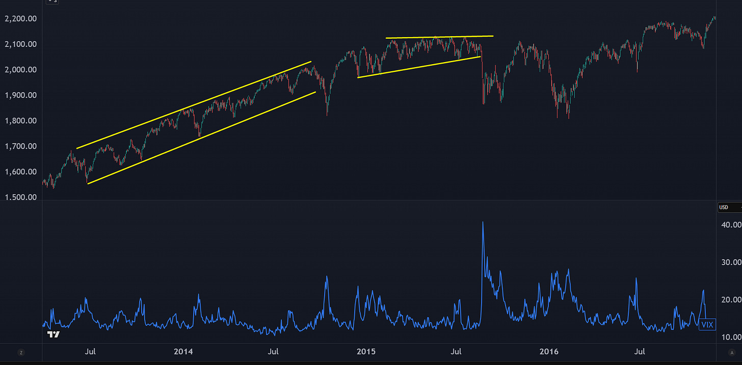 Even in the post QE uptrend, the S&P would have normal pullbacks that would get you out of trouble if you were betting on a range.