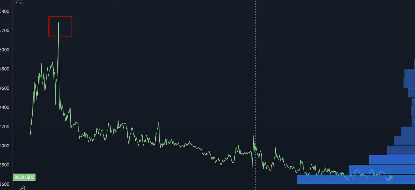 That caused a large premium to be introduced in PSLV (Sprott Physical Silver) compared to SLV:
