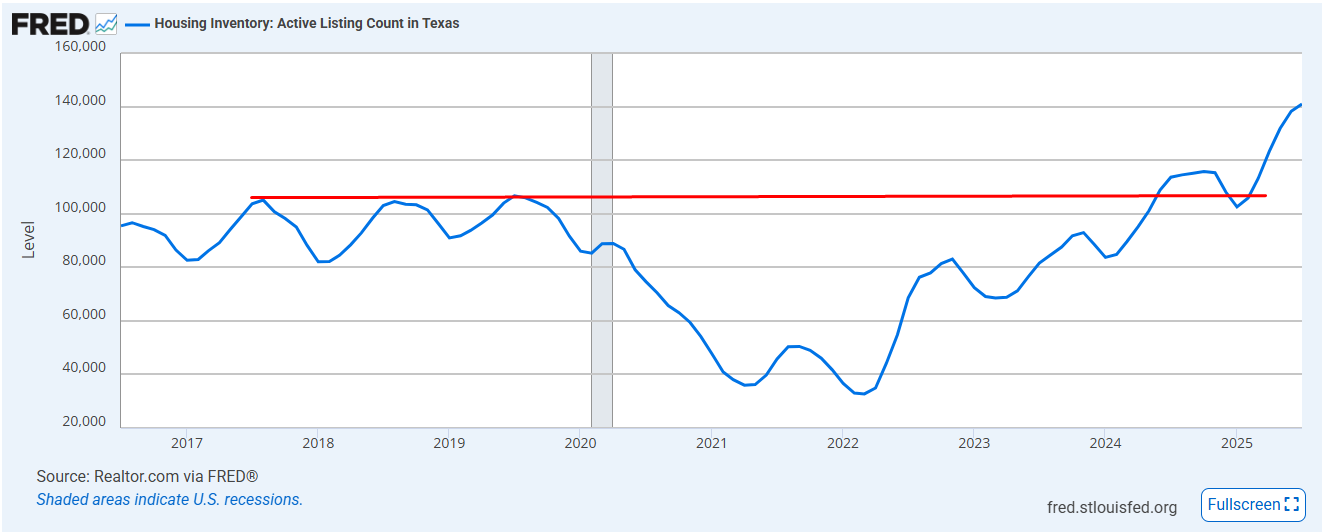 This is a chart of home listings in the State of Texas, which is now at multi-year highs.