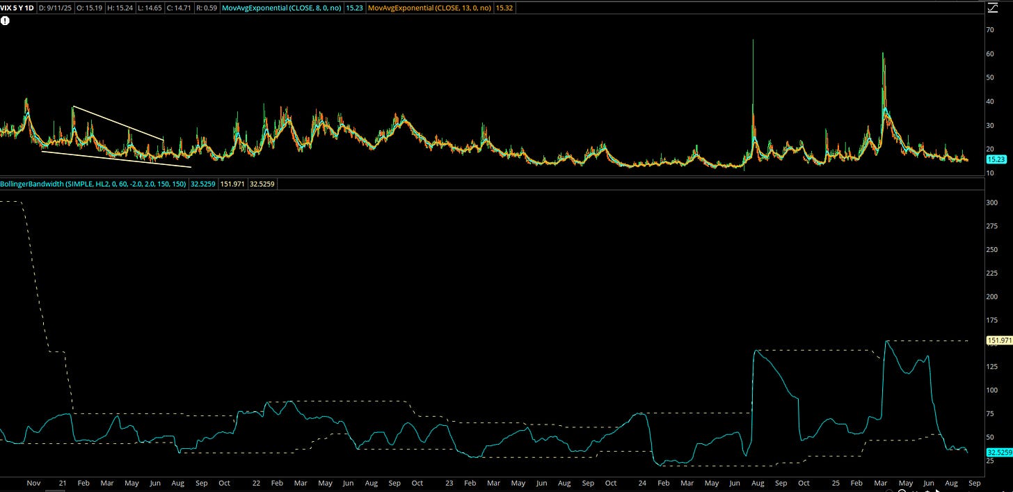 There’s a whitepaper floating around called “Forecasting the Volatility Tsunami” by Andrew Thrasher. The idea is that you don’t wait for the VIX to get low— you wait for it to end up in a tight range for too long.
