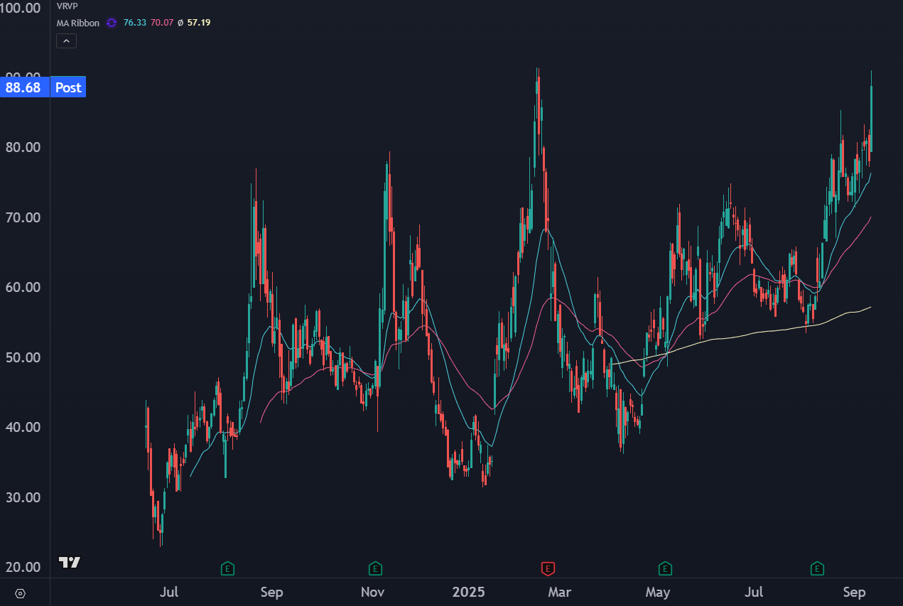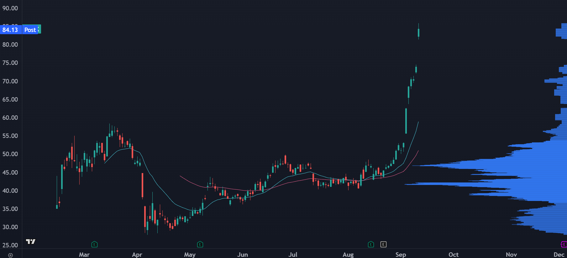 The AI trade is still alive and strong. I’ve been focusing on applied AI like in Tempus (TEM), where I alerted Convex Spaces Clients the Oct $80 calls for $4, and they’re now trading at $13 for a nice 225% win.
