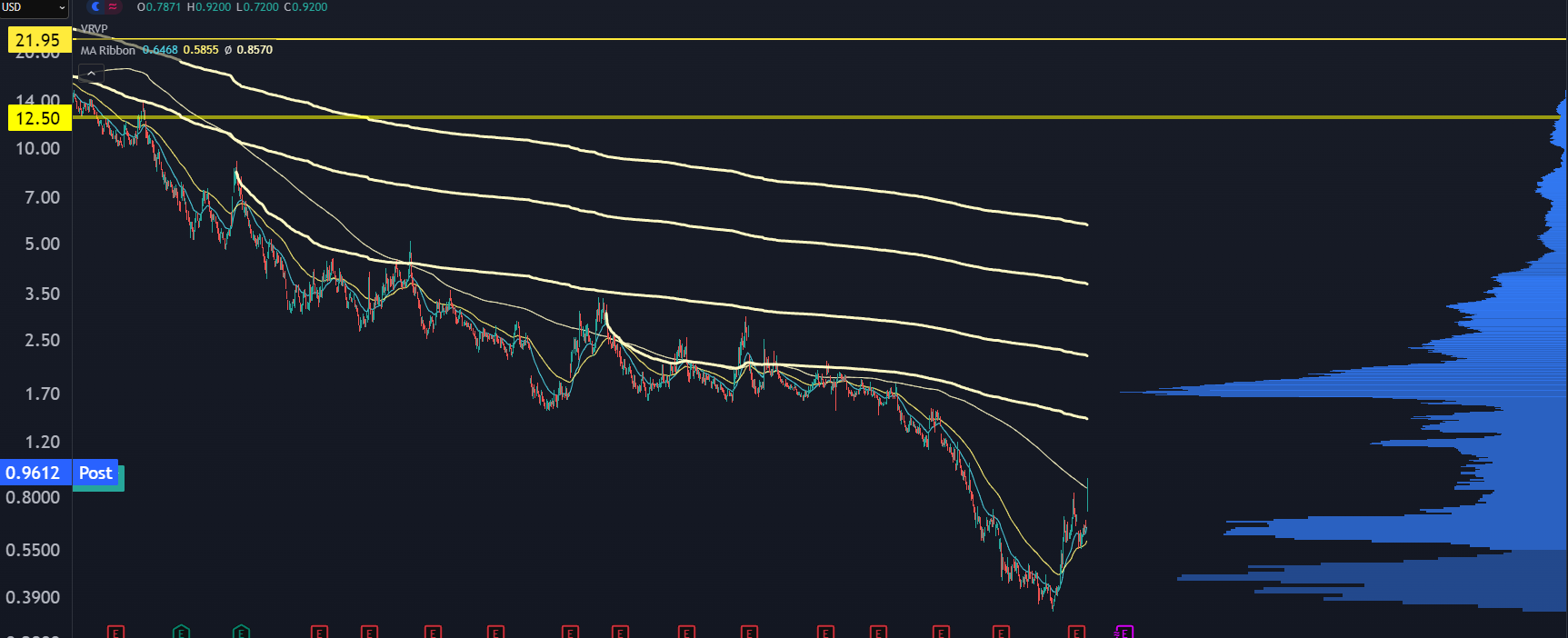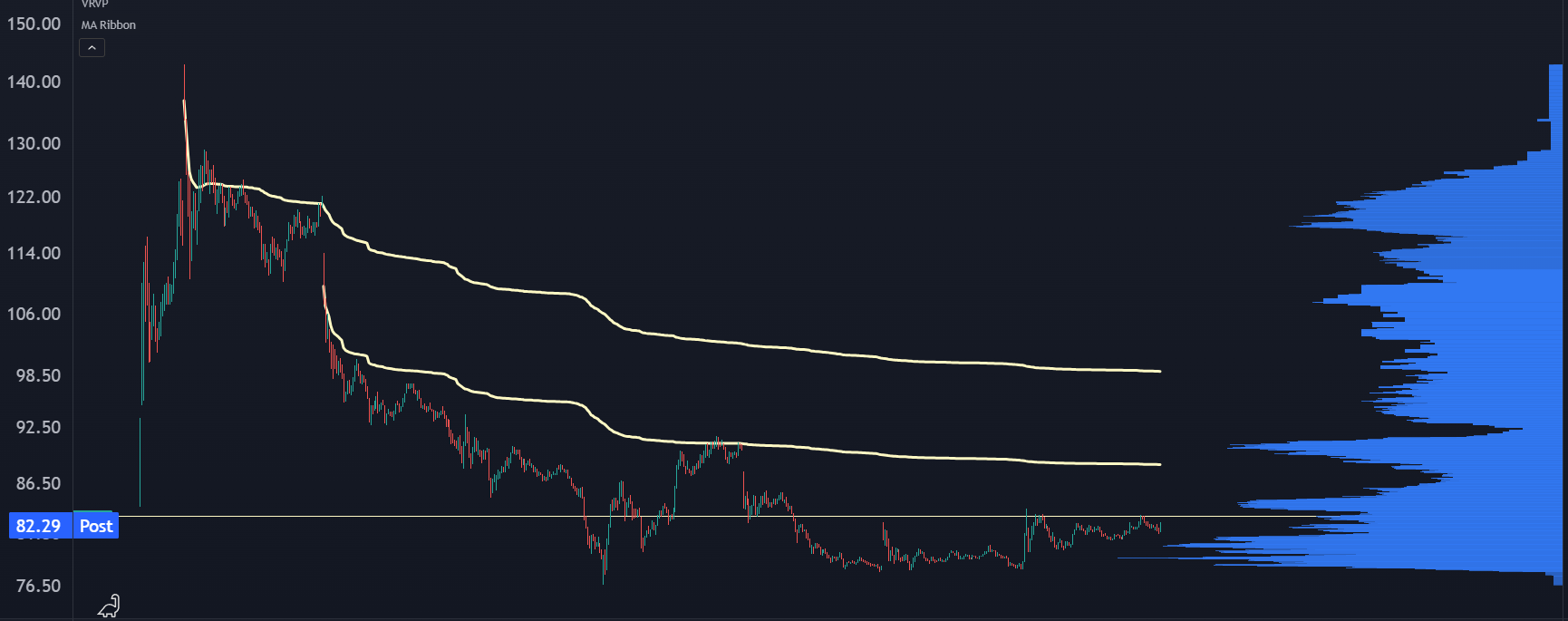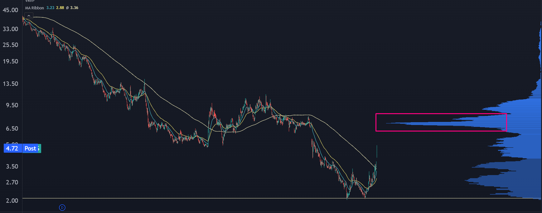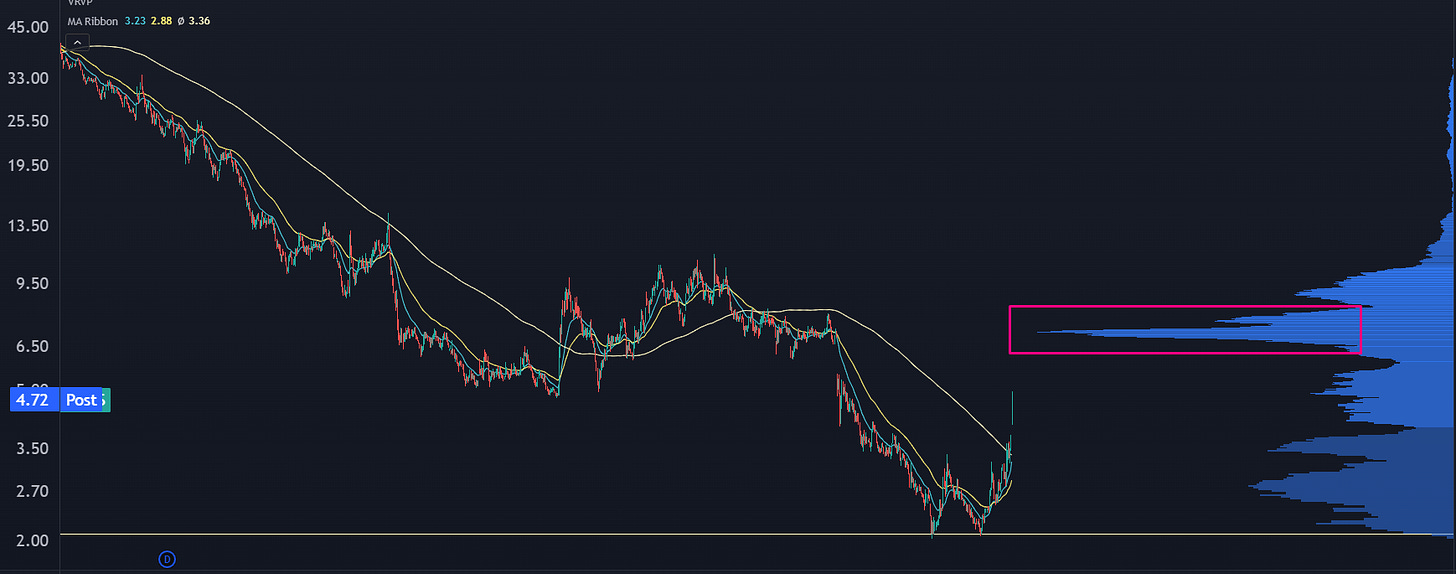 Most of these names have a ton of volume churn from the past two years. There were a ton of bottom callers that turned into bagholders. These are going to be spots where investors will look to get back to breakeven and bring new supply on the market.