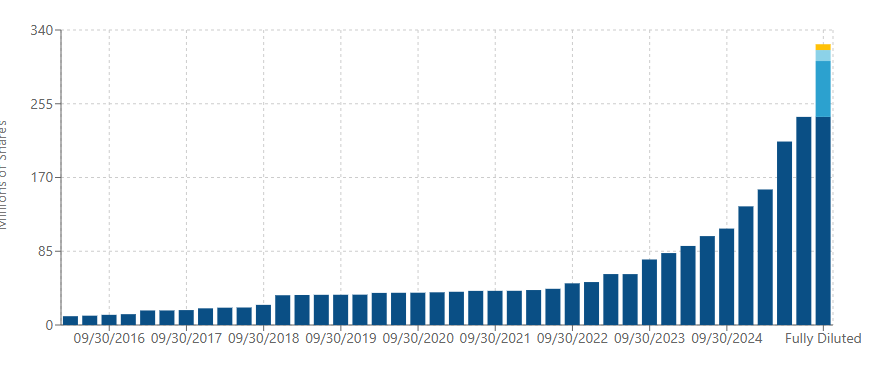 When your share count is a hockey stick, then the demand needed to push prices is a LOT higher.