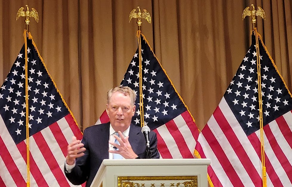 During my Field Trip to Mar-a-lago, I sat down to dinner and listened to a talk from Bob Lighthizer, who was President Trump’s Trade Representative.