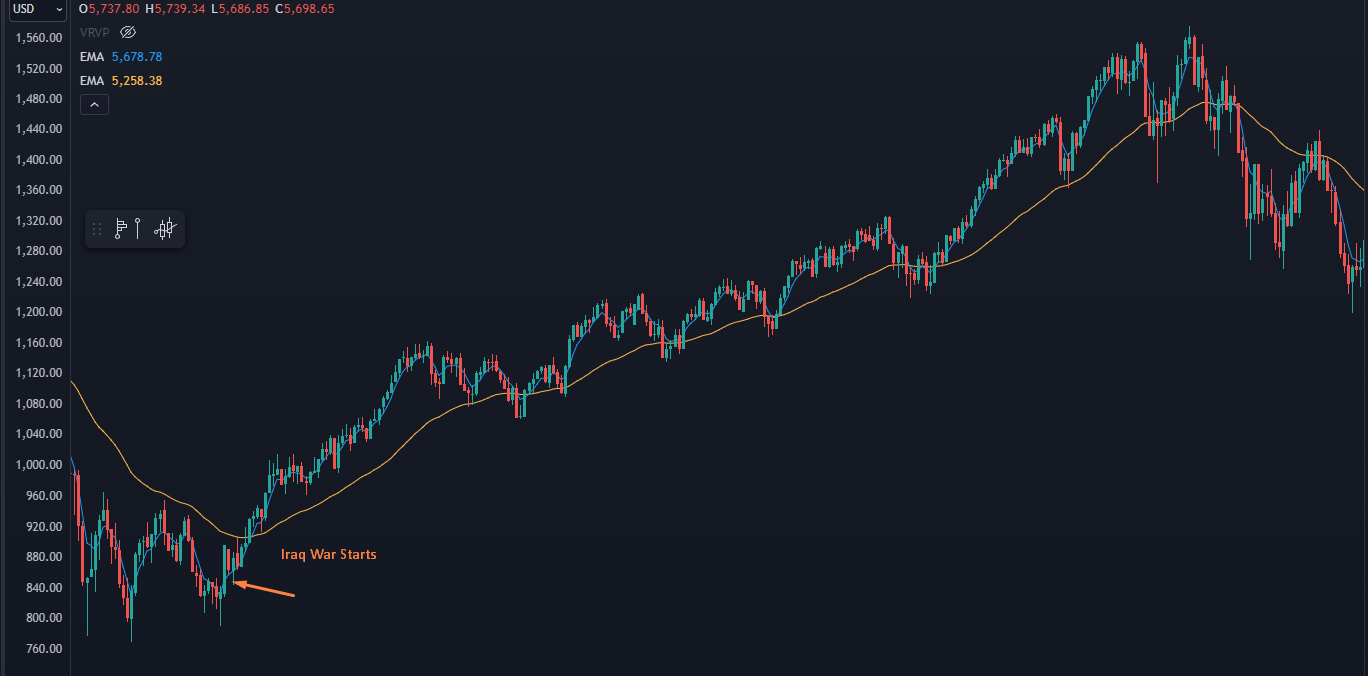 In 2003, the United States was gearing up for the Iraq War. The markets were still on shaky ground after the tech bubble, and economists were screaming about how the War would crank the deficit higher, causing the markets to drop.