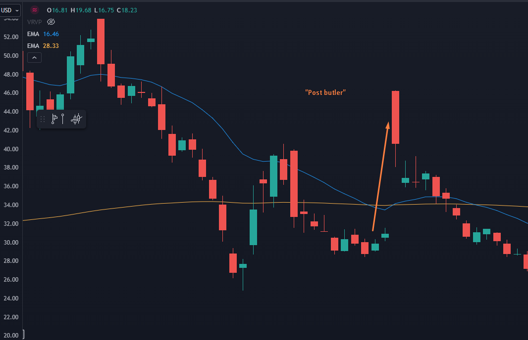 After the gap up on the Butler news, shares flooded the market as warrant holders got out with a massive return. Good for them, but it introduces psychic damage onto the stock and causes it to be in a downtrend.