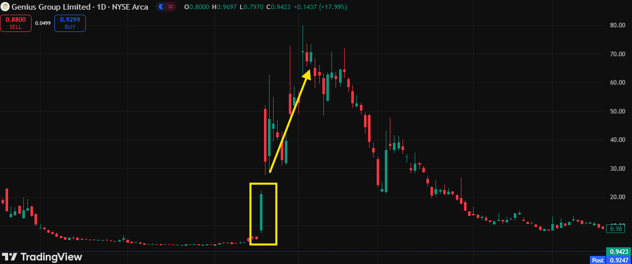 The PR campaign still has residual effects, and low-information retail traders get FOMO and panic buy the next day, driving the price even higher. The shorts from the prior day all got blown out, so there’s no liquidity on the ask.