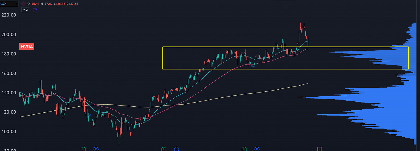 If NVDA selling accelerates towards the bottom edge of this range, and then bounces but can’t sustain… then I’ll start to get worried as it’s currently 7% of the S&P 500.