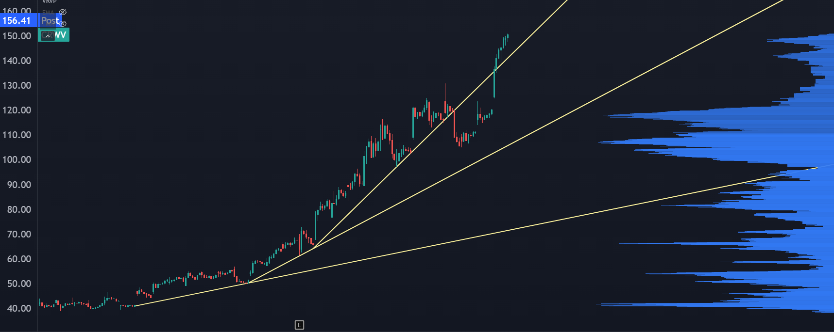 This is not price action that happens often— the parabolic remount. When a stock has trendlines that get steeper, at some point it can’t sustain itself and it has a downside liquidity break.