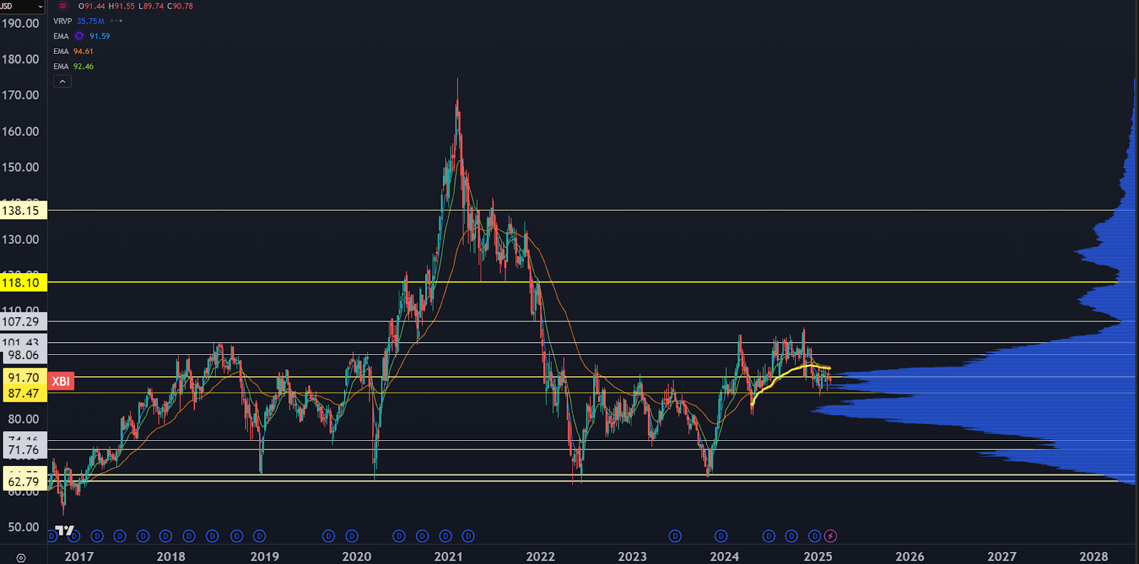 As a group, biotech has sucked for years. XBI has been stuck in a trading range for well over a year.