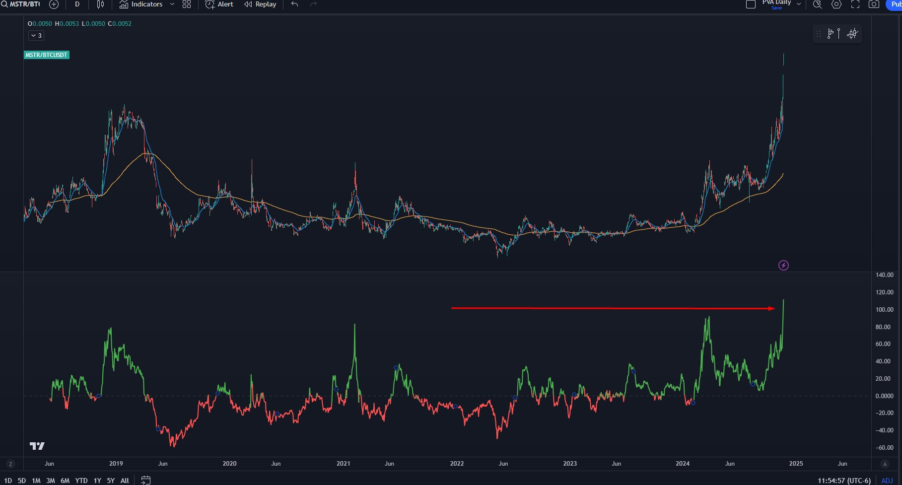 It’s not just a crypto play, it’s a leveraged crypto play. We saw that play out as BTC hit 100k for the first time, and MSTR had an outsized move relative to the rally in BTC.