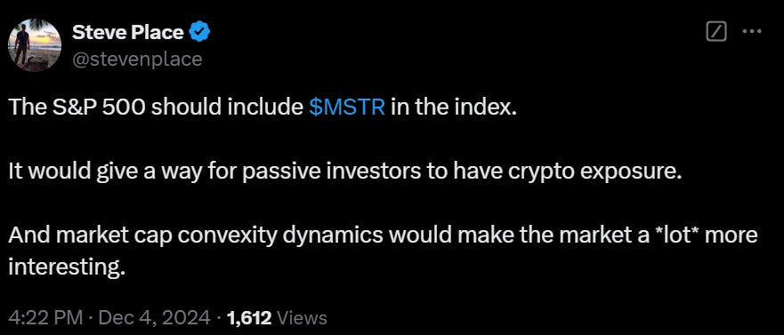 It’s impossible, of course. There’s very specific criteria that wouldn’t allow MSTR to be added to the S&P.
