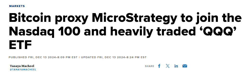 If crypto has another bull run, then MSTR will have a leveraged run. Now that it’s part of the Nasdaq, that means we are going to see crypto directly affect the stock market.
