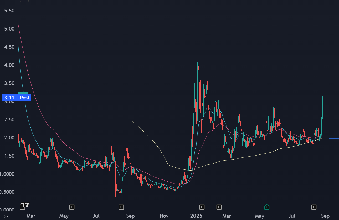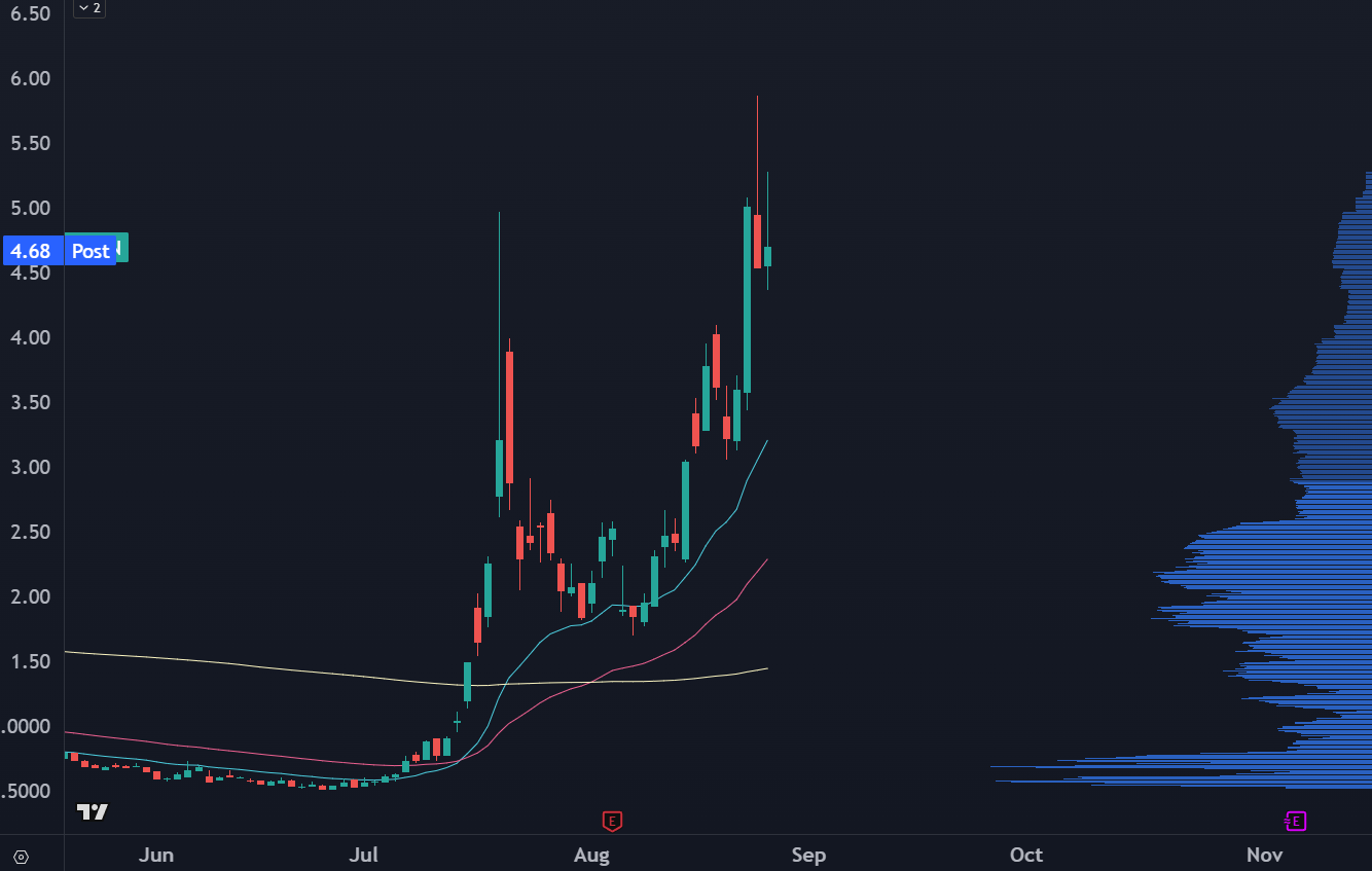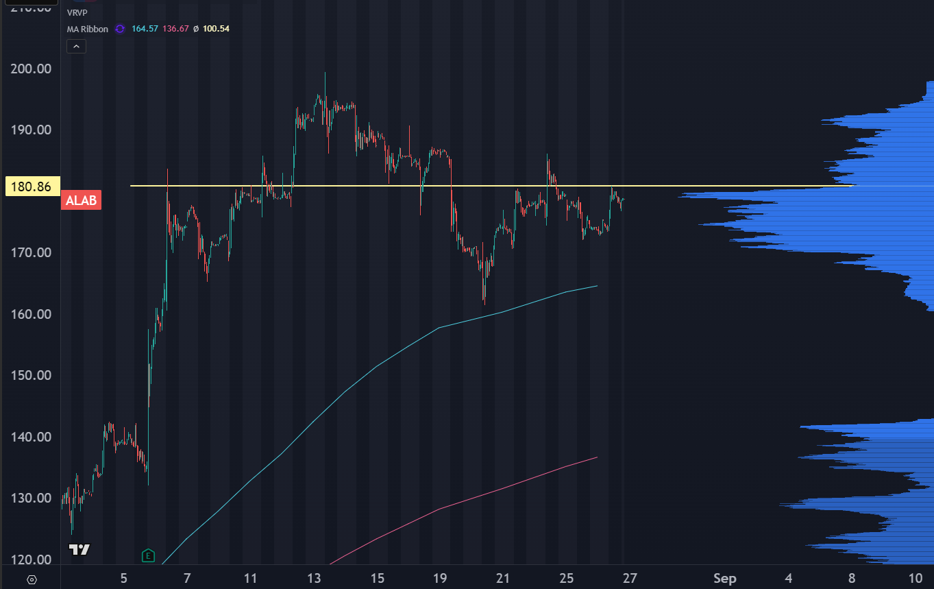 ALAB is an AI chip play. I know that NVDA could be a risk but a clearance above the volume shelf at 181 and I’m looking for the 200 push. Options are wide, but consider the Sep 205 calls at 4.00 for some momentum.