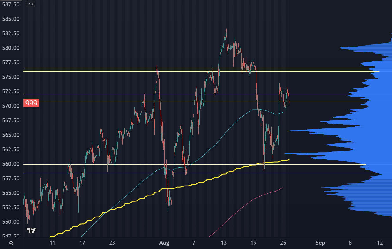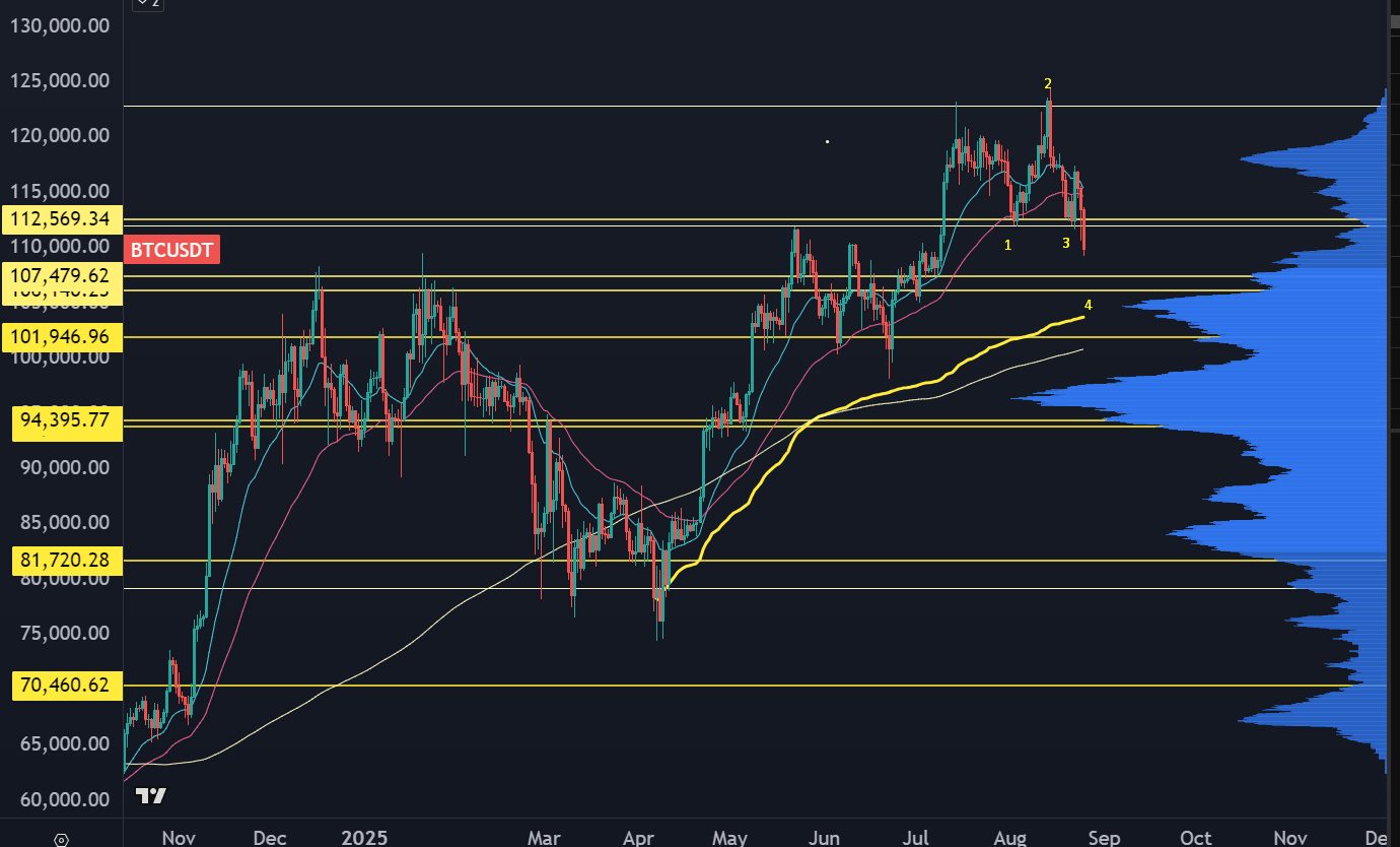 I think it’s a dip to buy. You have the swing AVWAP from the April lows coming up, as well as a volume shelf in the 106-107 range. Don’t expect new highs soon, but if you want to take a shot at some IBIT put sales, it’s a decent trade.