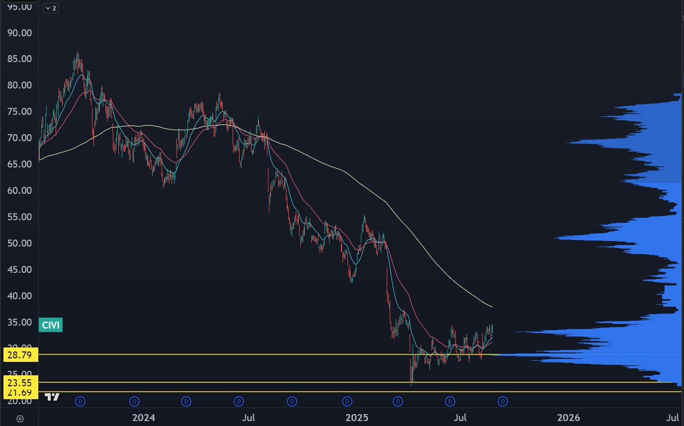 Next to Occidental (OXY), Civitas (CIVI) is the largest oil play in the DJ basin. It’s had a rough few years. You’ve got regulatory risks for operating in Colorado, cuts on production targets, and a soft oil market.