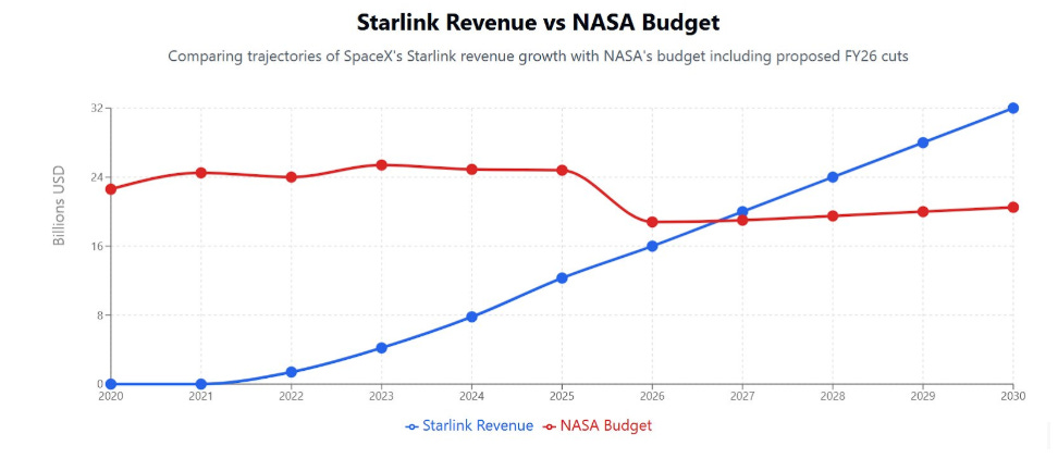 In the next few years, the revenue generated from Starlink’s internet service is going to be larger than the entire budget of NASA.