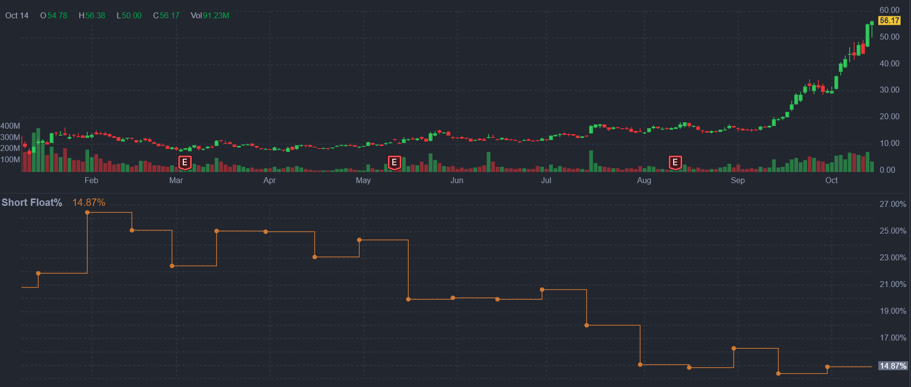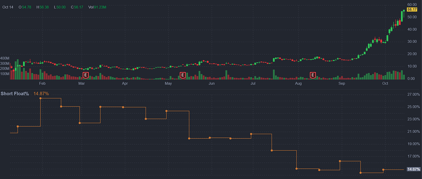 The stock’s still at 14% short interest. While still being up a triple from the range break. Phew.