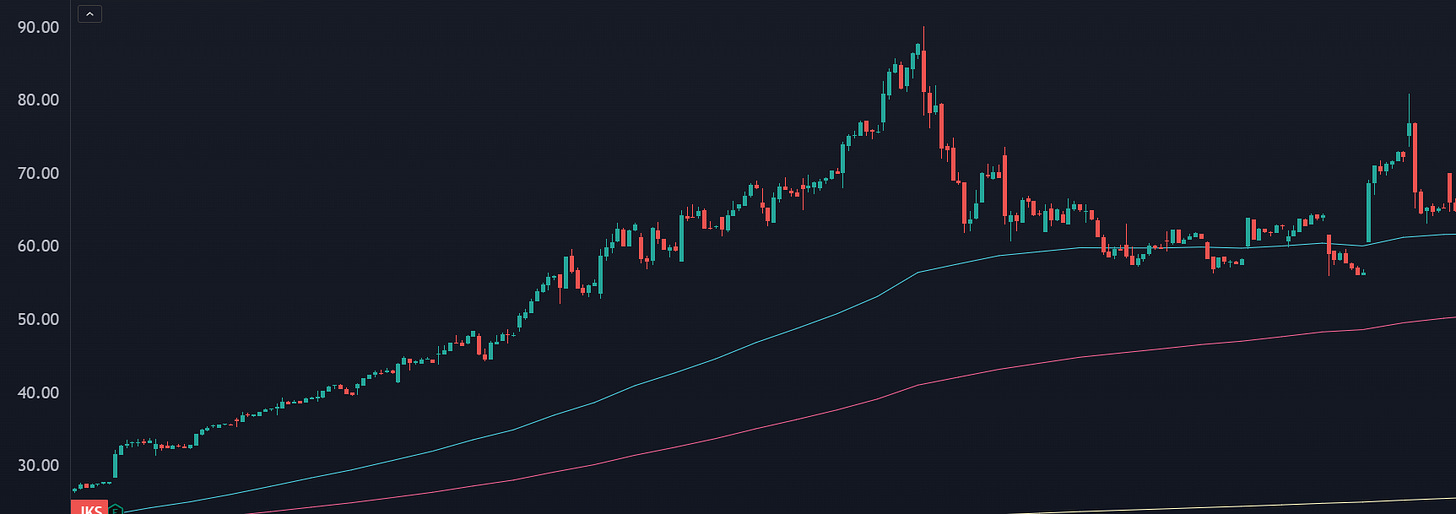 There was a lot of that in 2021. You felt it if you tried to fade the obvious parabolic names. Of course there was the { GME | AMC | BB | EXPR | KIRK } squeeze, but there were other names like Jinko Solar (JKS):