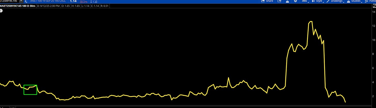 This is a kind of long volatility trade I like when you expect a liquidity pull but a bounce. Similar to what we saw in PLTR.