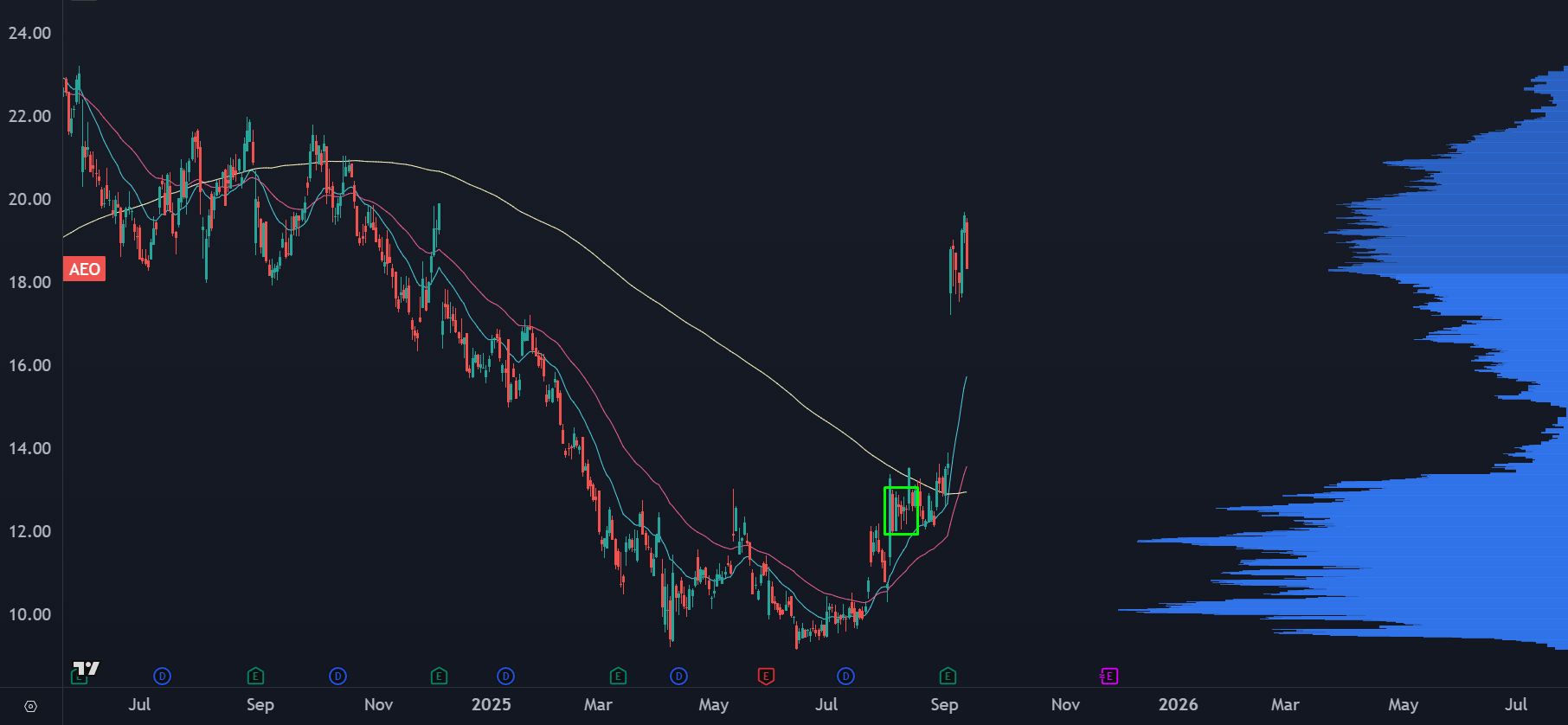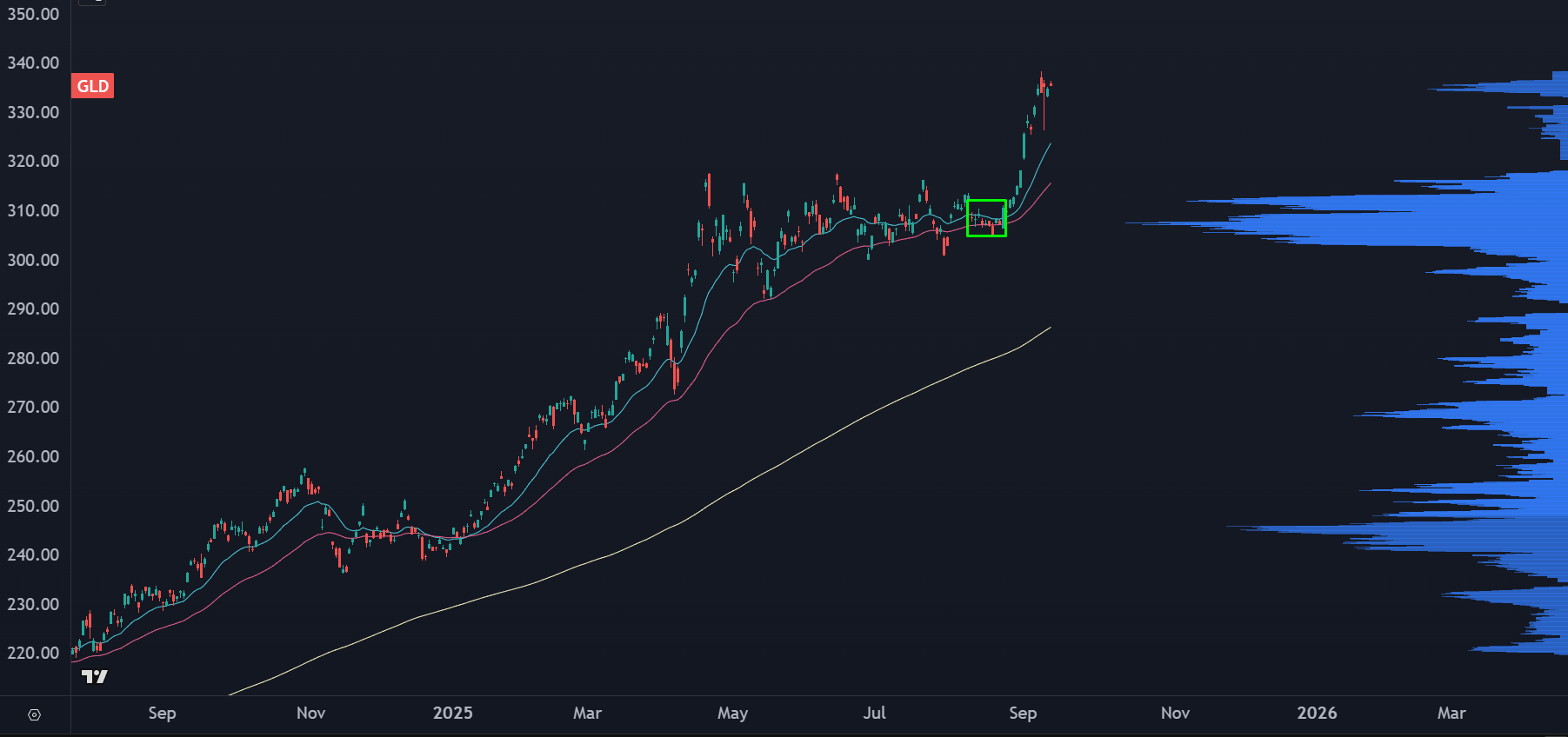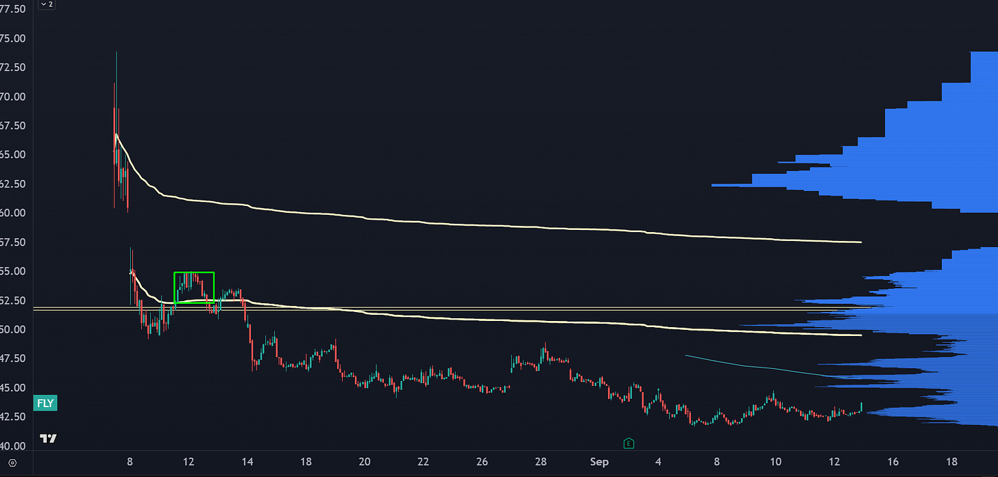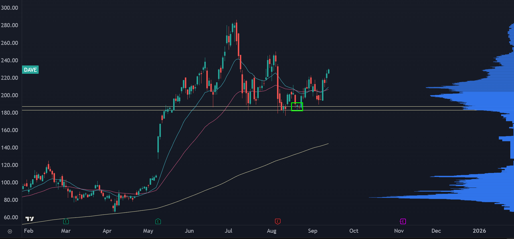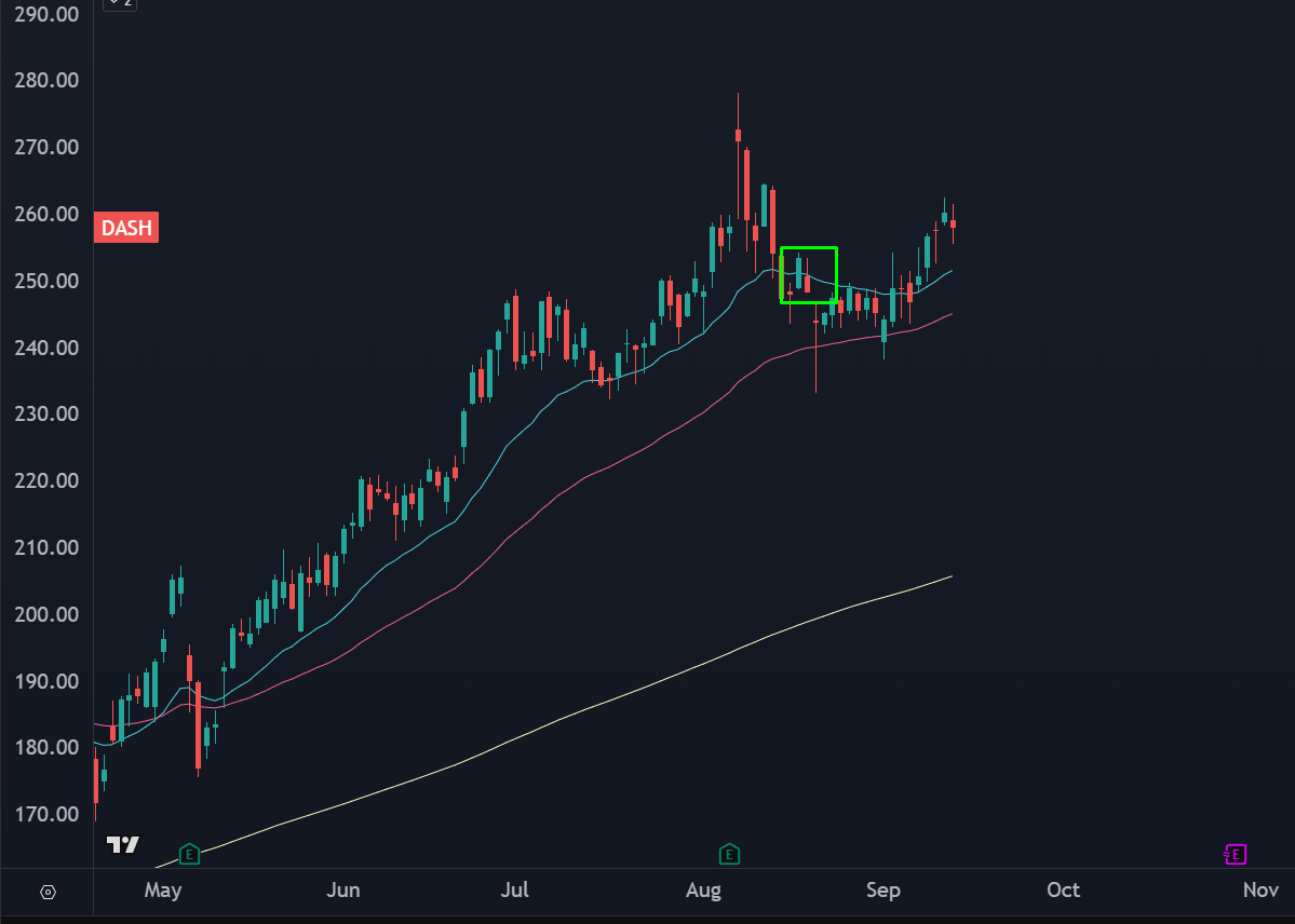 I had an internal pivot level that I was expecting to clear out and see some momentum. It did for a day or two, gapped down into the 20EMA, and then reclaimed it before going on a monster run.