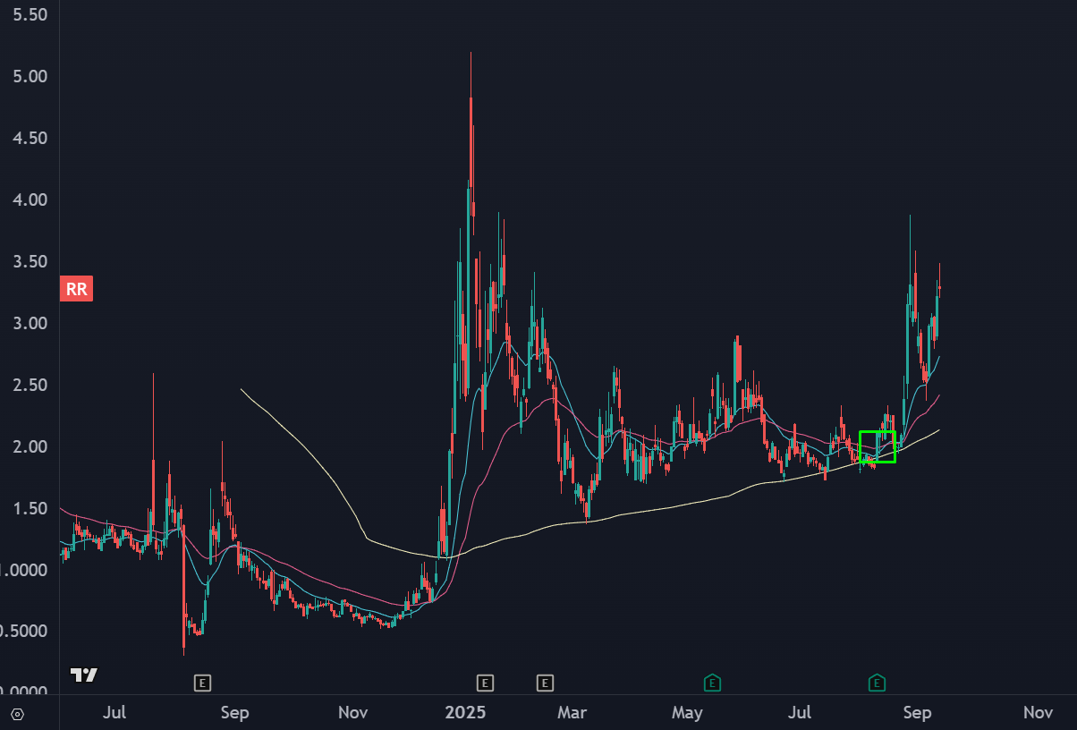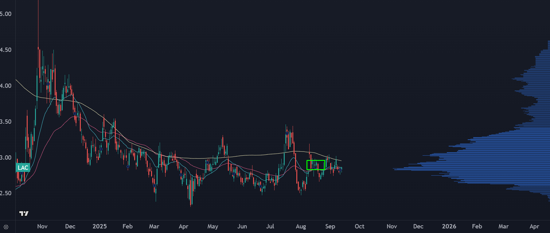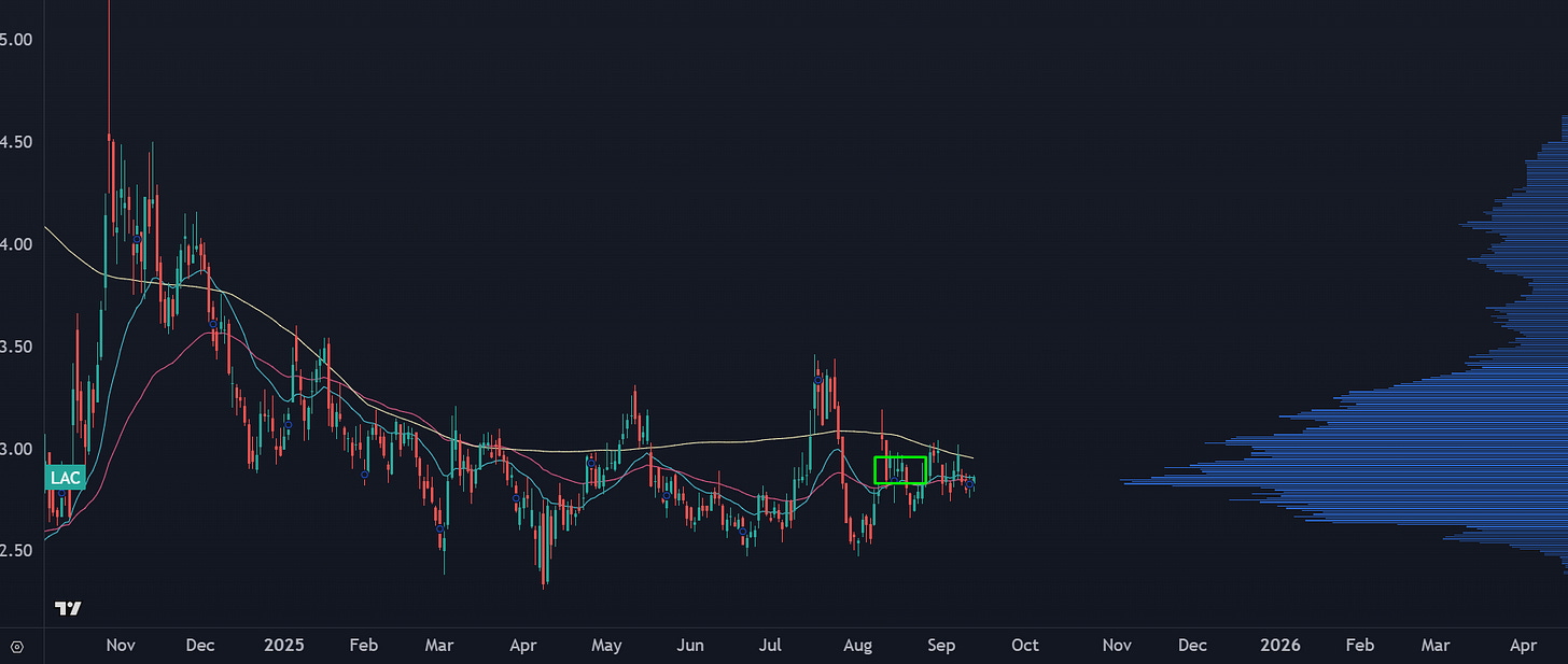 Another lithium trade, where I’m looking for the 3.25 breakout. It hasn’t happened yet, so it’s no trade but things could get interesting after the Fed cut.