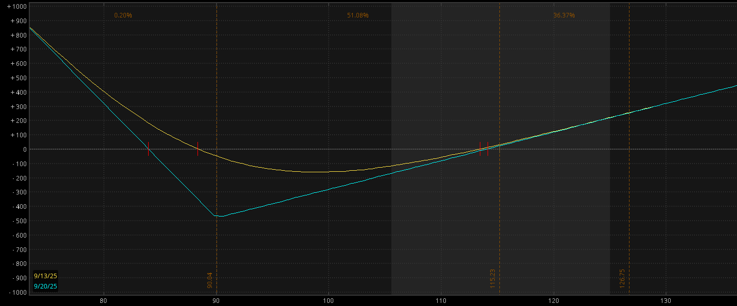 I recommended the Sep $90/$105 call spread, which unless you scaled, are sitting at a -100% loss.