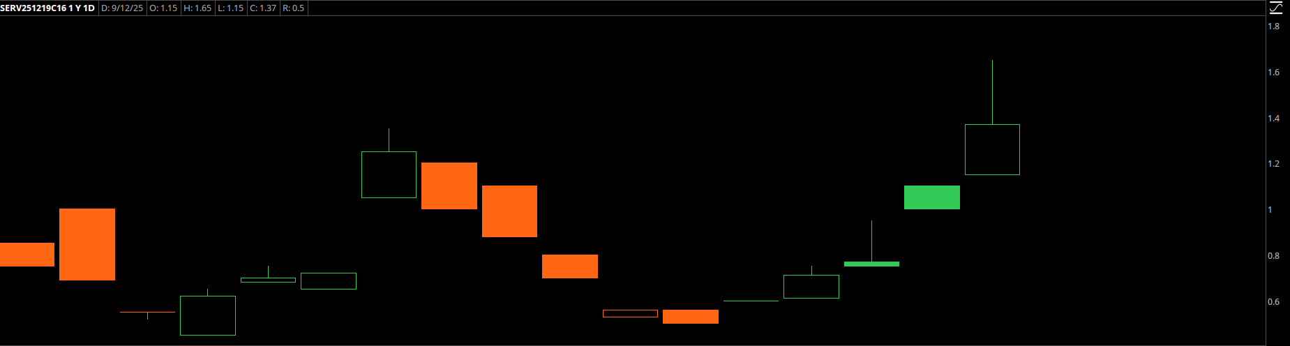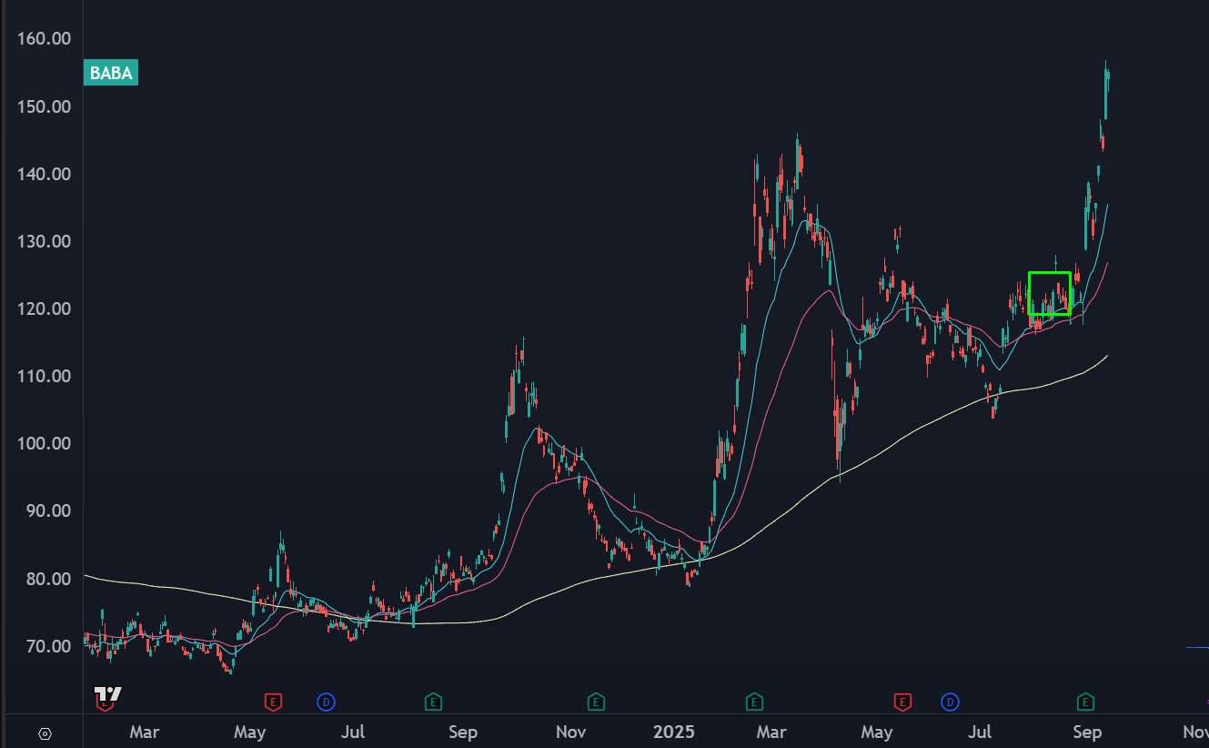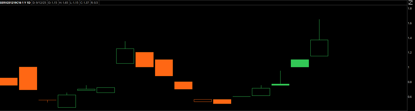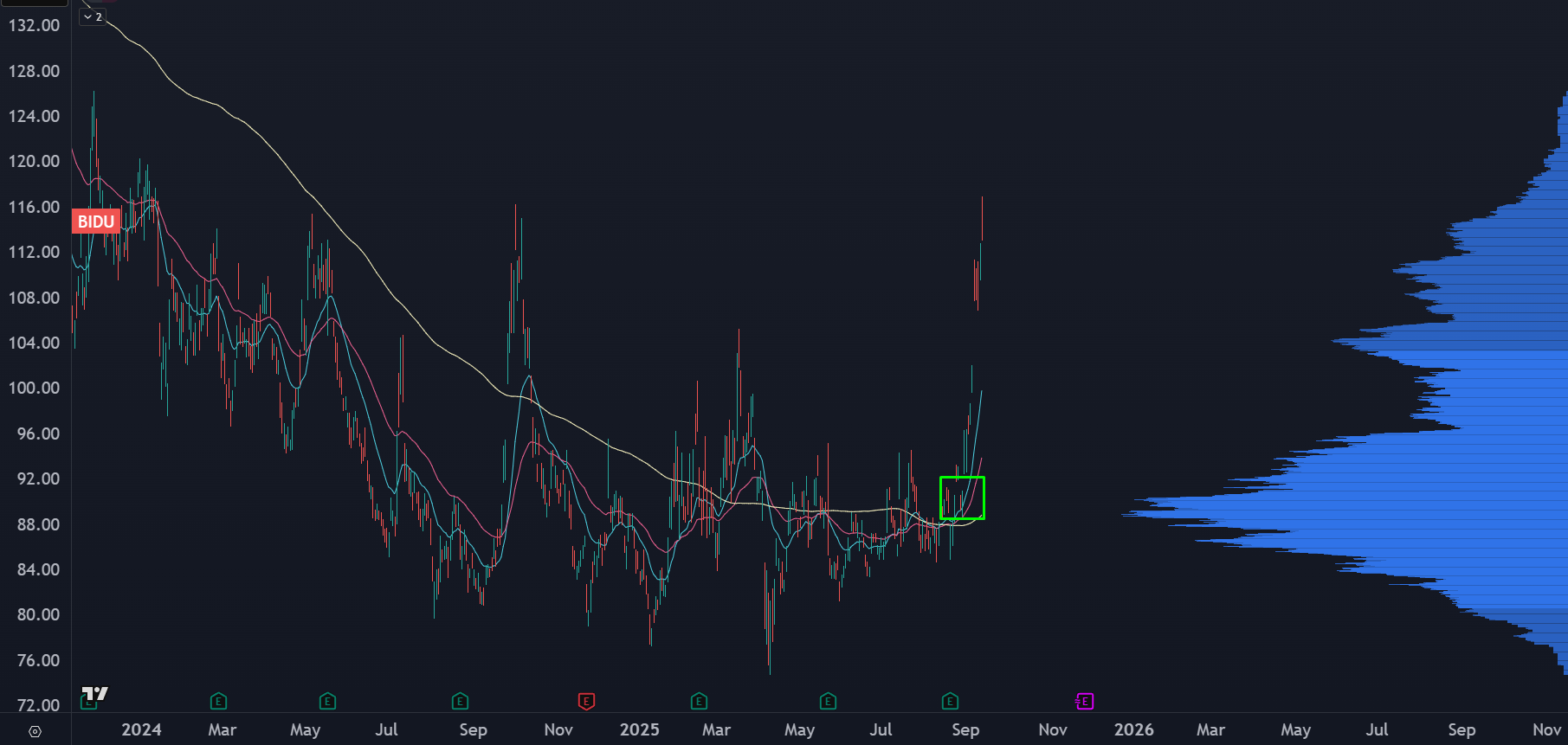 This former Chinese high-flyer had been compressing for a while, with steady higher lows throughout the entire summer. The company just had earnings, and the upside calls were very underpriced relative to what could happen.
