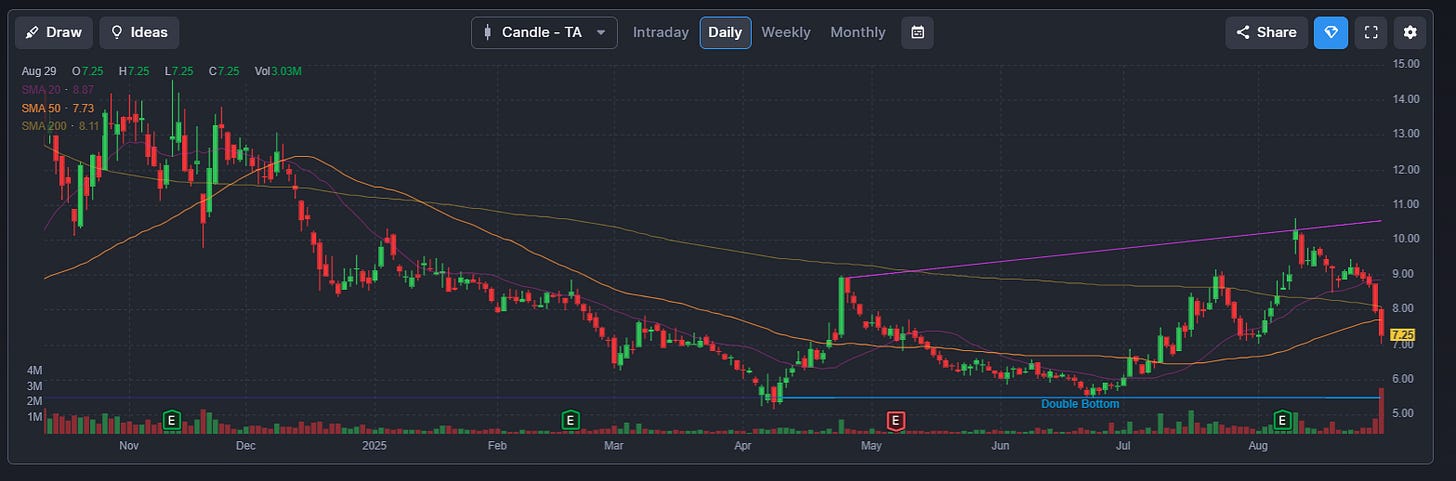 On the spike these traded above $12, but with that hard reversion they are now sitting at a return of -67%.