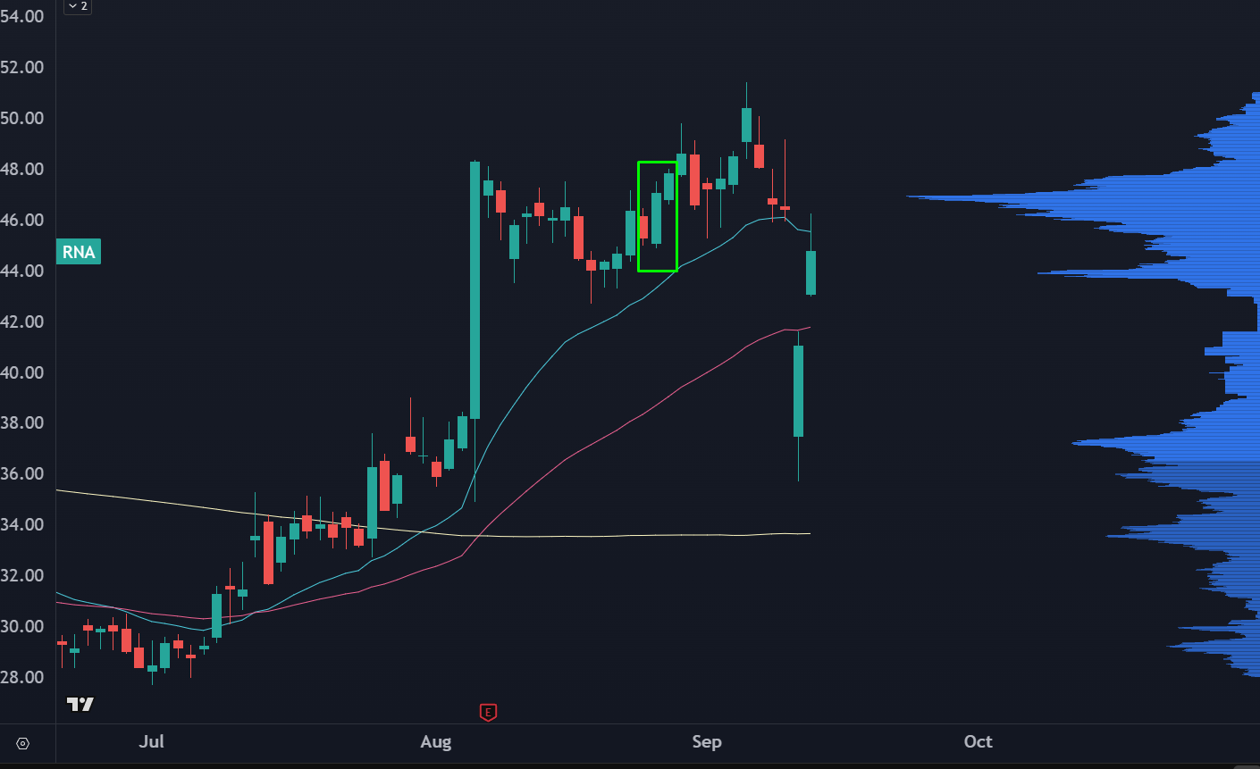 I made the call to take it at $44.84, with a stop at $41.59. That got hit on September 8, so that’s a loss of -7.2%