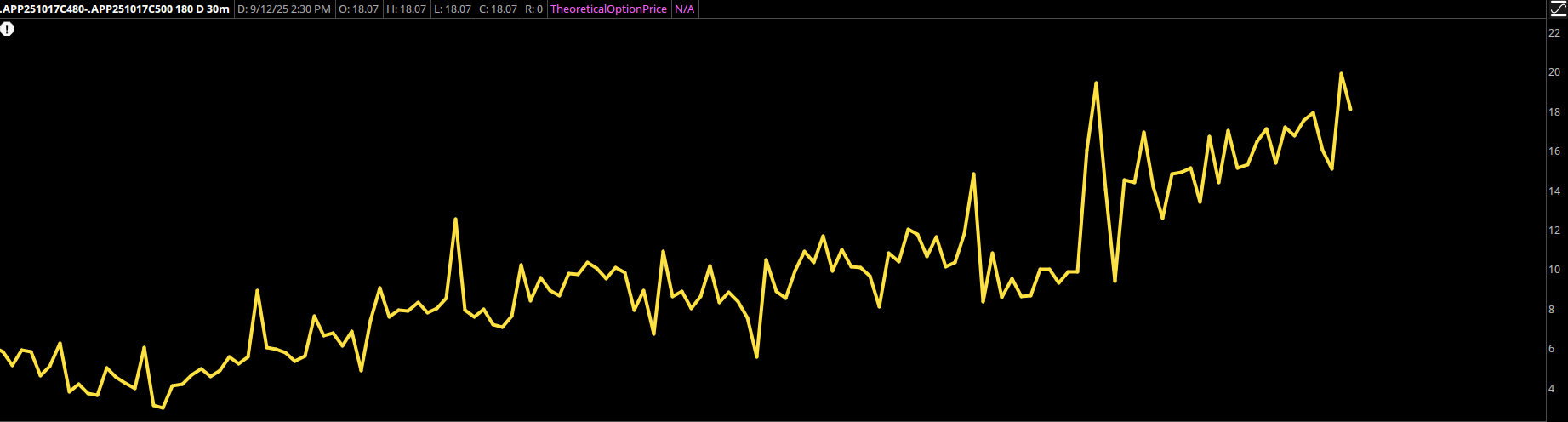 I called out the Jan 320/340 call spread at 5.15, and it’s currently trading at 6.43 for a gain of 25%.