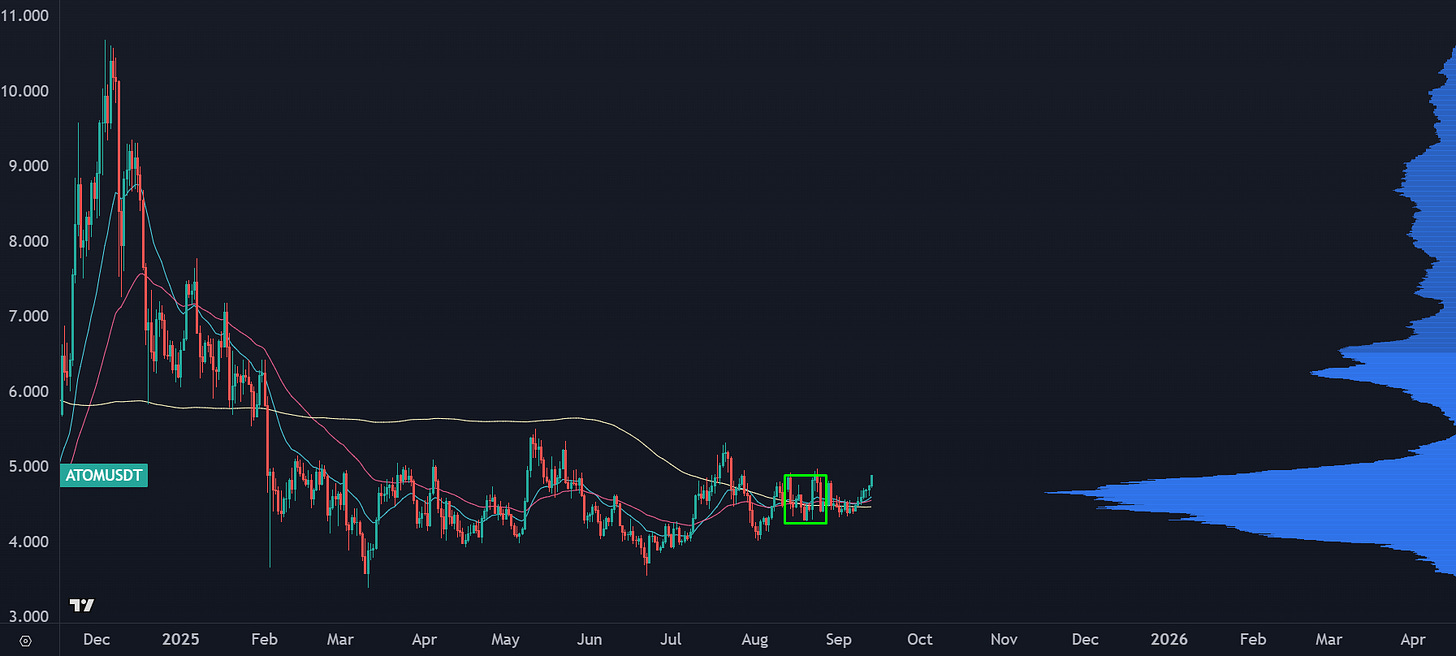 The price alert for ATOMUSDT is at 4.833, and it’s currently at 4.881, which is effectively flat.