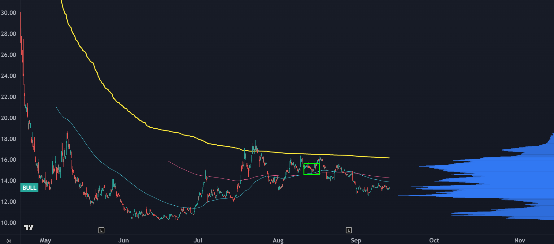 Longer term setup is still valid, it just may need more time to base out and we may get a clean setup on a $16 breakout.