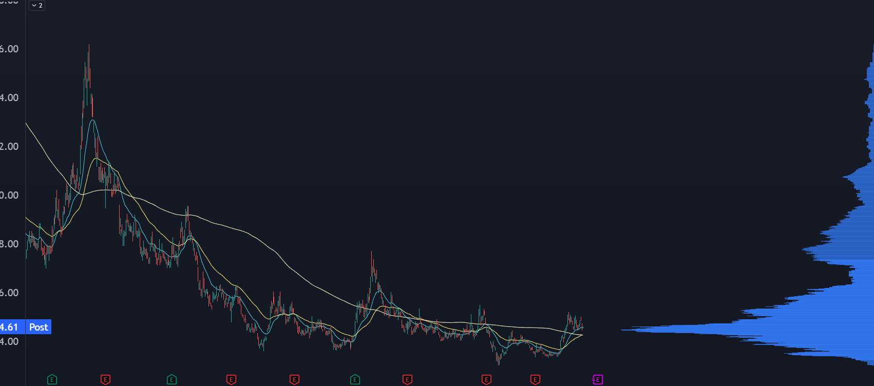 Good bottoming setup, with initial price target of $7. The recent push was a month ago so options are pretty cheap. The November $8 calls at 0.13 are a good “set and forget” trade.