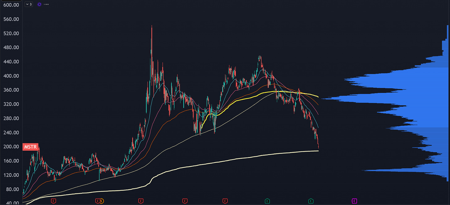 There’s rumblings that Strategy will be forced to sell BTC under certain levels, causing a price cascade in the crypto sector. I’m not so sure.