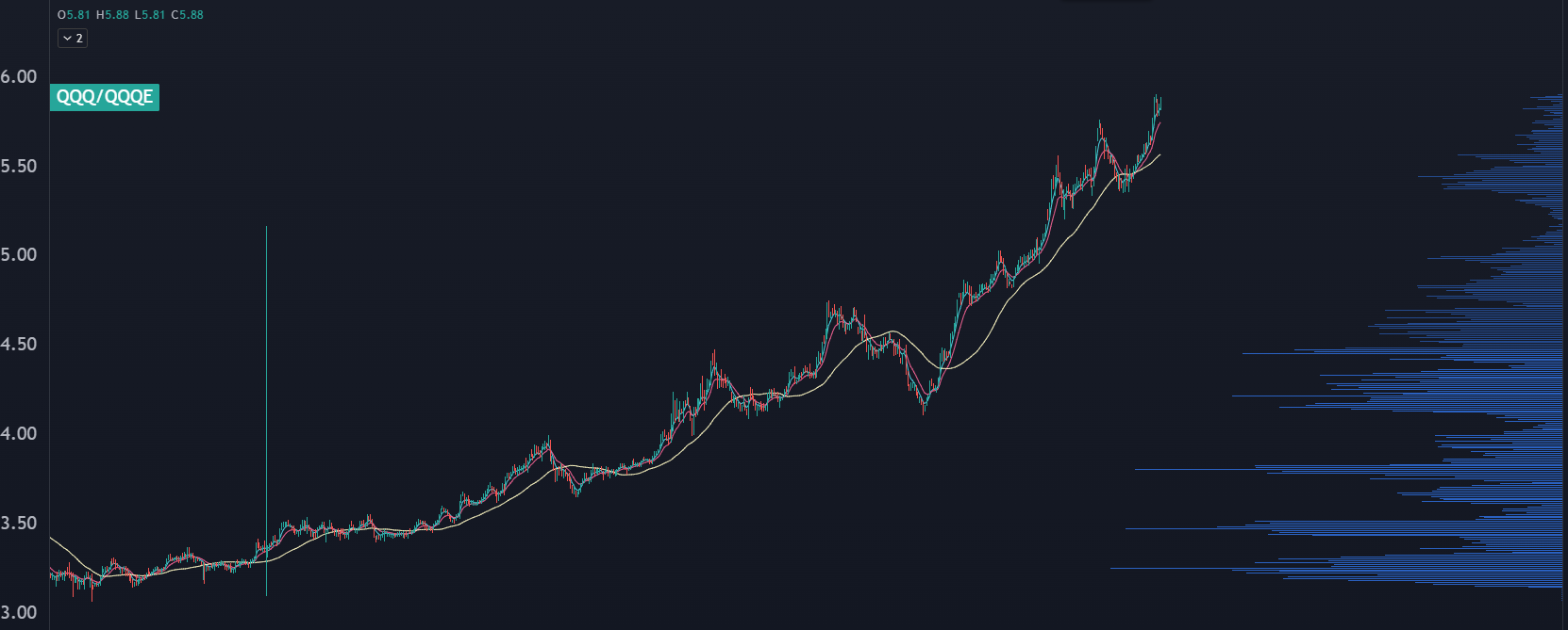 This market rally has been extraordinary. Literally. It’s extra-ordinary. This kind of grind higher without a recent doesn’t happen very often. For context, the market went 40 days with the 8 EMA above the 13 EMA, and that’s happened 4 times since 2006.